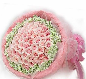 99 pink roses with green fillers,as shown.This bouquet is hand-arranged and delivered by Vietnam local florist in all major cities in Ho Chi Minh City, VN.