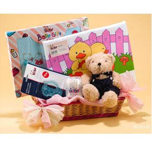 Baby gift set of clothing set, receiving blanket, cotton buds, baby water-filled teether and a soft teddy bear for the joyous occasion