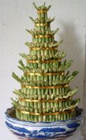 Our Asian inspired lucky bamboo is sure to make a striking impression when it arrives. Legend says a gift of living bamboo brings good luck to its bearer, hence the name, Lucky Bamboo. Our Pyramid Bamboo plant has 8 layers of bamboo double stacked and tied together to be delivered.