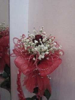 Sản phẩm gồm 1 bông hông nhung lớn, kết hợp baby