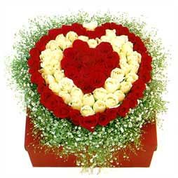 Red Rose & White Rose(100 Stems) + White Gypsophila + Green Grasses