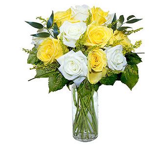 These bedazzling 12 Yellow & White Designer Roses will bring a smile to their face.