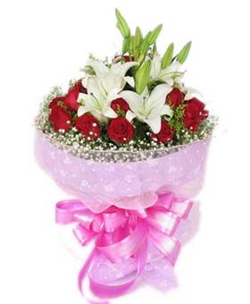 16 red roses and mixed flower