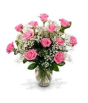 Feminine and delicate, these pink roses sit among lush greens and babies breath. A beautiful gift to send to that special someone