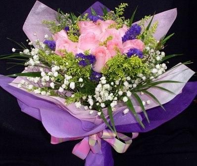 Pink Roses Hand bouquet Saigon Flower shop delivery flowers to New World,Park Hyatt,District 1,District 2,District 3,District 4,District 5,District 6,District 7,Phu My Hung,SaiGon South,District 8,District 10,Go Vap , Binh Thanh, Tan Binh, Tan Phu District