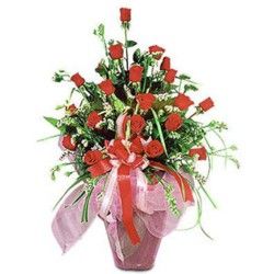 24 red roses are blooming in fresh greenery sure to make your beloved feel happy