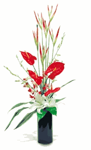 This exotic arrangement of anthurium, lilies, dendrobium orchids and heliconia will have you winging your way to a tropical isle!