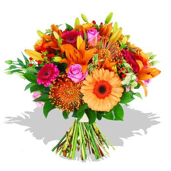 gorgeous variety of rose (cherry brandy), some fabulously vivid gerberas and some aziatic orange lilies