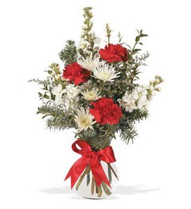 Make their Christmas merry and bright with this cheerful floral arrangement of red, white and blue flowers. So much joy for such a reasonable
