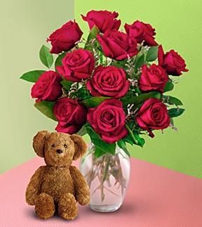Dozen Roses with a Bear