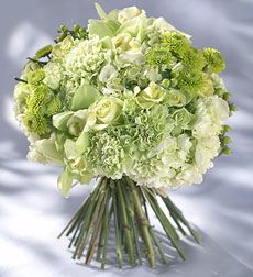 orchids, hydrangea, hypericum, 'Jade' roses, carnations and green berry mums, all in brilliant shades of green. A gift of excellence and extravagance that will make anyone turn emerald