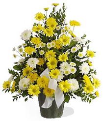 A thoughtful remembrance of assorted yellow and white chrysanthemums shows your lasting affection for a close friend.