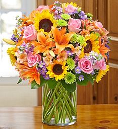 Luxurious and lasting. And able to transform any celebration into the must-attend gala of the season. A grand gathering of roses, lilies, sunflowers, stock, alstroemeria and more, beautifully hand-arranged by our expert florists in a posh cylinder vase