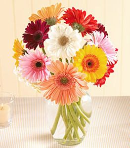 Glorious Gerberas Brighten someone’s day with this cheery collection of mixed color gerbera daisies. This bouquet is perfect for any occasion. Stems in a variety of mixed colors