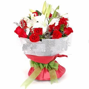 Bó hoa Lyli trắng và 12 bông hồng ðỏ