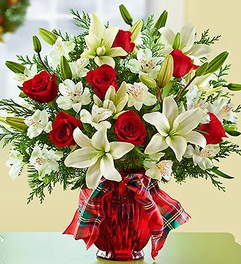 Holiday Magic™ Cast a romantic spell this holiday season with the freshest red roses, white lilies and alstroemeria, hand-designed with fragrant Christmas greens