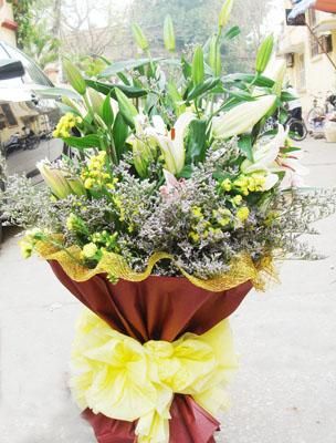 Bảy cành ly bó chụm, điểm thêm sao tím và salem vàng. Mang đến cảm xúc của một vườn hoa lớn. Tặng người yêu, đối tác, bạn bè, người trong gia đình đều được