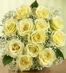 One dozen jade green roses,