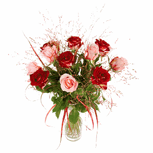 Treat the love of your life to this charming combination of pastel pink and the most beautiful two-tone red roses, tastefully appointed by a sprizz of seeded wildgrass and luxuriant foliage.