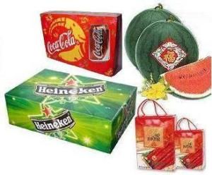 2 watermelons 9-10kg/each 1 box of Heineken beer 1 box of CocaCola 2 packages of Chinese sausage