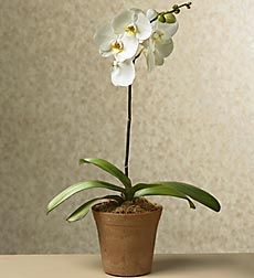 Phalaenopsis orchid arrives budding and ready to bloom Color of bloom may vary Arrives in an attractive, recycled terra cotta styled planter that measures 6"D