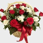Let your love flow with this passionate arrangement of 24 red and white roses with white fillers in a basket. Tell her "I can't wait to see you again".