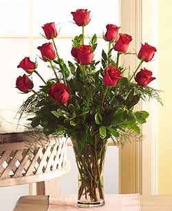 A Dozen red Roses In Vase Arrangement, Same Day Delivery In Saigon, Hanoi Vietnam-Vn