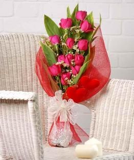 Sản phẩm gồm 12 bông hồng, salem trắng và lá thiết mộc lan