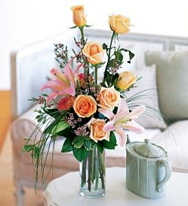 Looking for a way to awe someone special? This splendid display of roses and lilies will indeed.