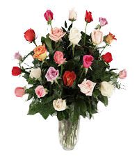 An enchanting blend of lush hues is reflected in this stunning arrangement of long stemmed roses.