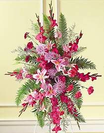 An enchanting easel spray with beautiful stargazer lilies, gladiolus, carnations and more is a wonderful expression of your sorrow.