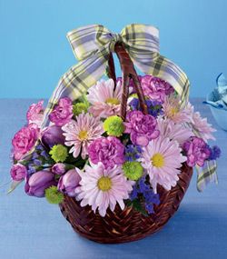 a lovely Easter basket! Our hand-woven keepsake basket is filled with purple and lavender blossoms
